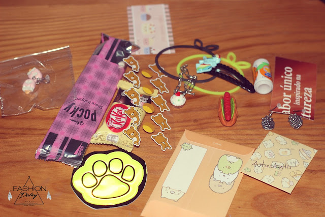 A Kawaii Portugal enviou-me uns mimos como podem ver pela fotografia , recebi autocolantes super fofinhos , recebi brincos em forma de gelado ( posso usar em vídeos de tutoriais etc ) , enviou-me borrachas em forma de bebida e uma em forma de cachorro ( sim porque faço coleção de borrachas ) , pulseiras super in e fofas e aqueles doces para comer jesus , então o Kit Kat .